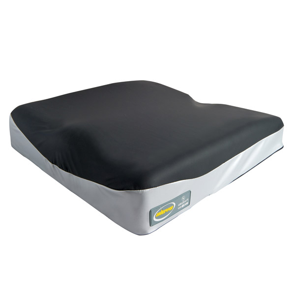 Sitzmulde im Kissen verhindert das „nach vorn Rutschen“; integraler -Schutzbezug mit rutschfester Unterseite.